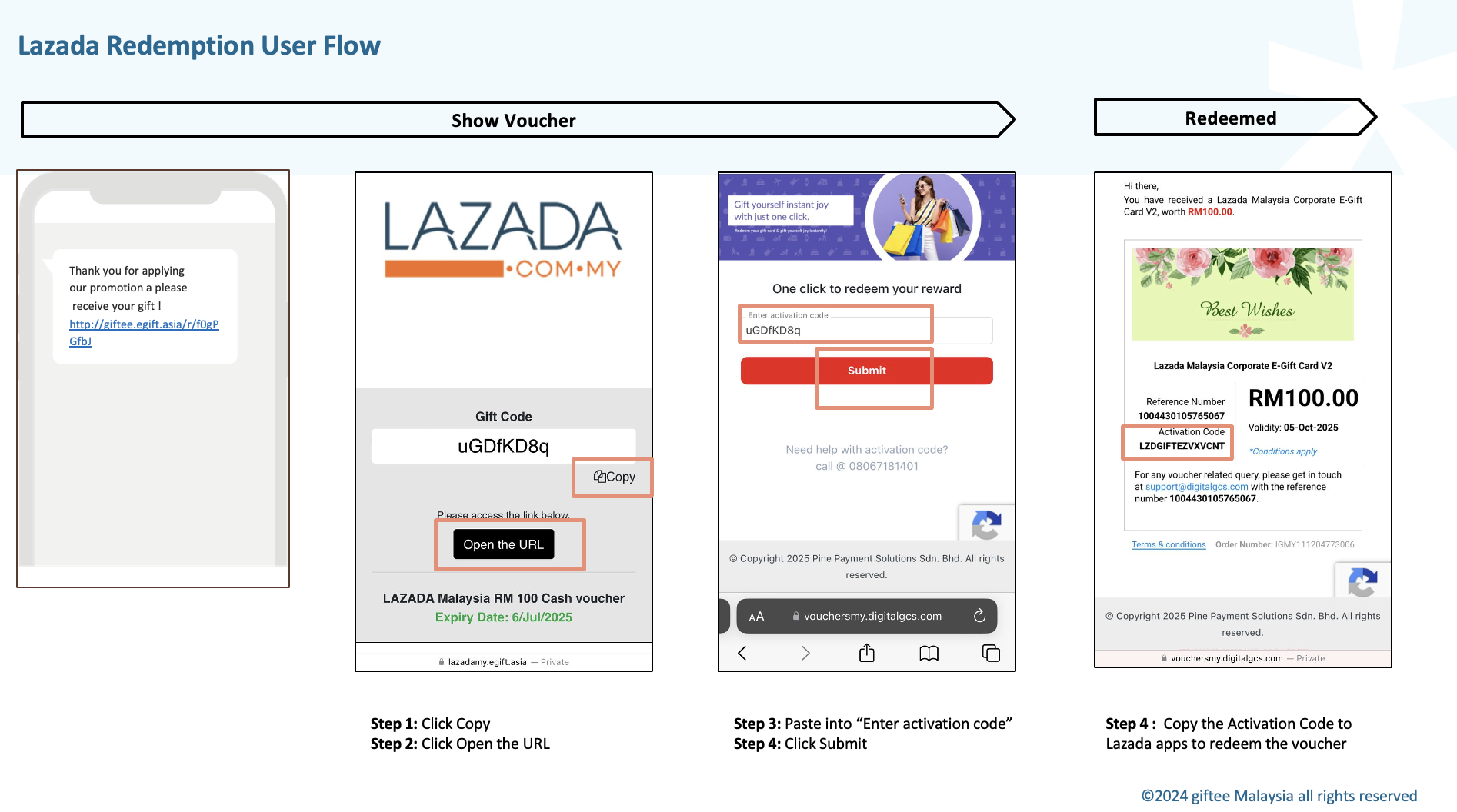 - Copy the Activation Code and paste it to the Lazada app to save the voucher